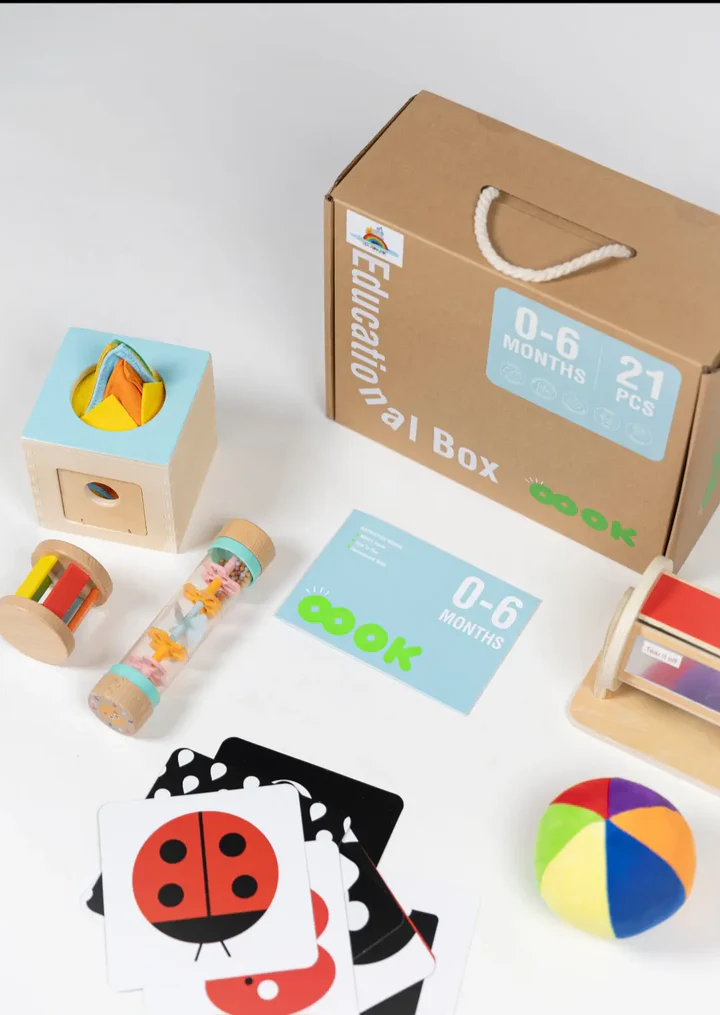 Welcome to our wooden educational box for babies aged 0 to 6 months! Our carefully crafted box is designed to stimulate the senses and promote early learning in a safe and engaging way.